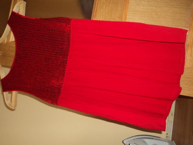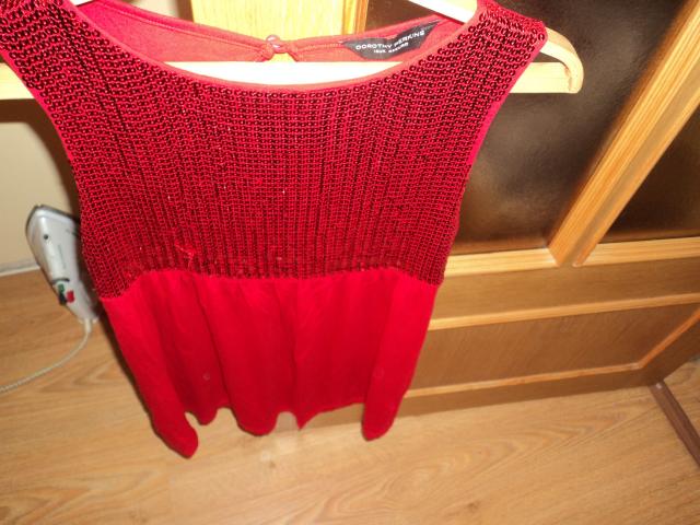 Su raudonais žvineliais palaidinė išmera Rašo 12 uk 40 euro manau puikiai tiktu ir kas nešioja M , nes nuo pilvo plateja.