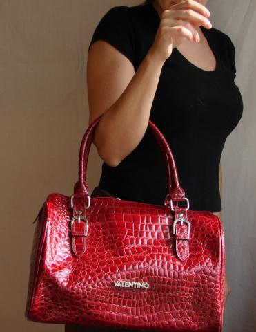 Gražuolė originali sodriai raudona lakuota "Valentino" rankinė. Galima sakyti nauja, nes buvo dovanota, bet nenešiota. Išmatavimai maždaug 36cm.x25cm.x17cm.