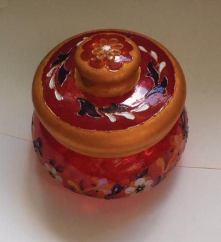 Dekoruota stiklinė cukrinė- puikus papuošalas jūsų stalui arba gera dovana draugėj.