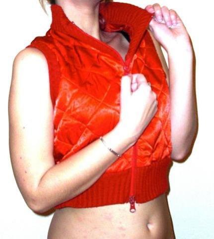Labai faina trumpa raudona liemenė stilingoms panelėms. :J Dydis universalus xs/s/m [mazas] turi blizgesio labai sordri spalva super , issiskiri is pilkos minios ;) labai tinka prie keduku ir pan... ;) Is U.K