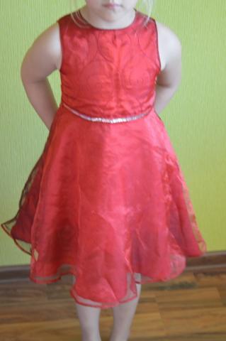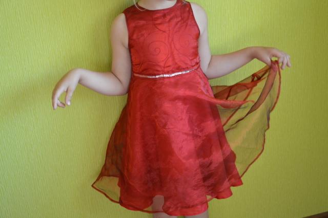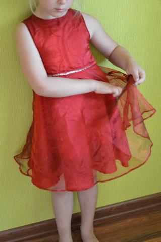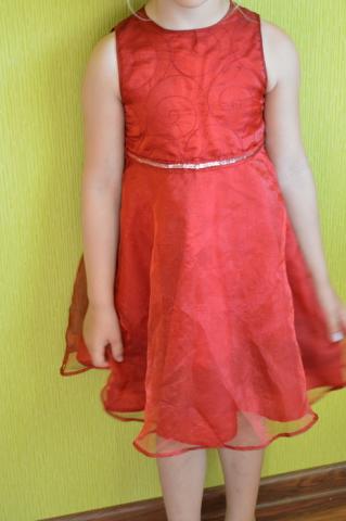 Puošni šventinė suknelė. Modeliukui 5m. ir 10 mėn. Rašo 3-4 metų, 104cm ūgiui. Visas suknelės ilgis apie 65 cm. Ilgis nuo pažasties apie 51 cm. Per krūtinę apie 31 cm (matuota po pažastimi). Nugaroje susegama sagutėmis. Be defektų.
