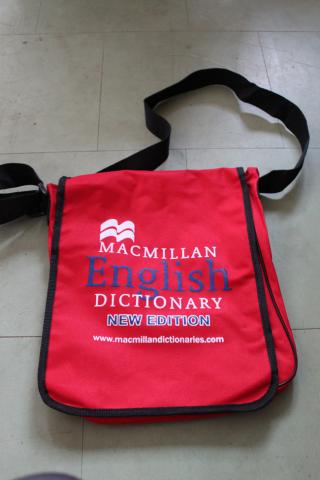 Raudona nauja tašė. Pirkta su žodynu. Persimesti per petį. Talpi