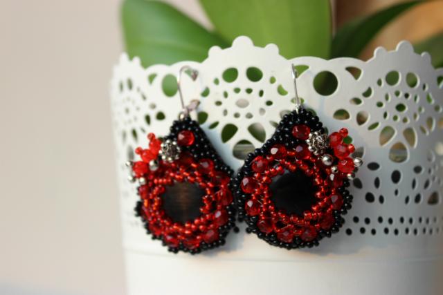 Raudonai juodi auskariukai su sidabriniu užsegimu