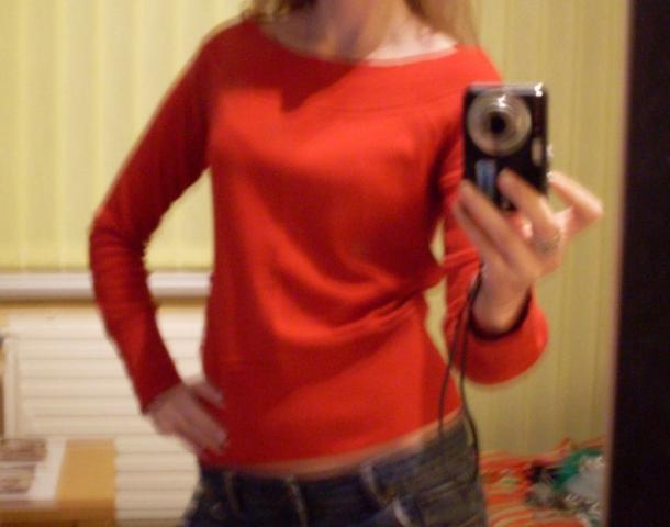 spalva tai tokia sodresne raudona .. minkstas megztukas ..