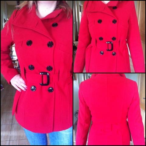 Raudonas paltas. Pagaminta Lietuvoje. 75 procentu - vilna.