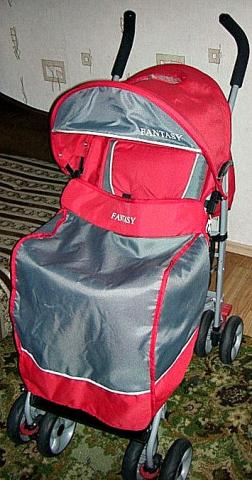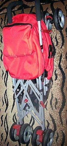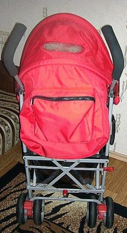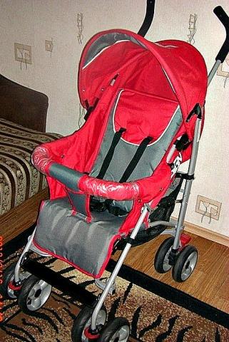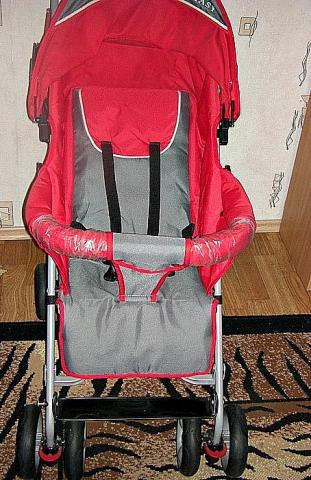 Dėl kainos dar galima derėtis Vežimėlis naudotas, bet jo būklė labai gera, raudonas, su atšvaitais. Prie vežimėlio yra apklotėlis kojoms uždengti. Apačioje yra tinkliukas įsidėti daiktams. Turi saugos diržiukus, sulankstomas. Stogelio užpakalinėje pusėje yra didelė kišenėlė, o viršuje langelis. Vežimėlis sveria ~ 12 kg.