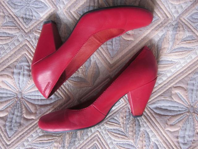 Rykiai raudoni aukškulniai, yra mini įbrėžimų ties kulnais ir nosimi.