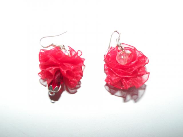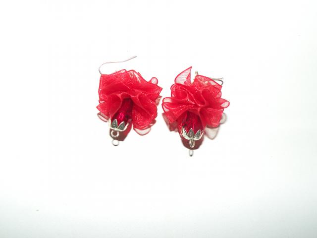 Raudonais Kaspinėliais aptraukti, labai gražūs ir patrauklūs auskarai.