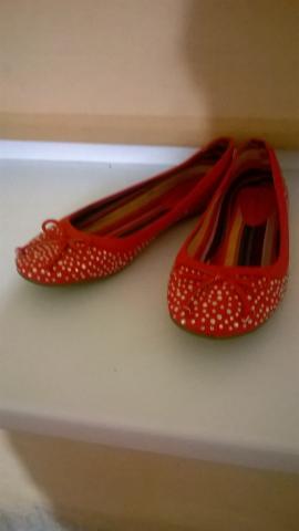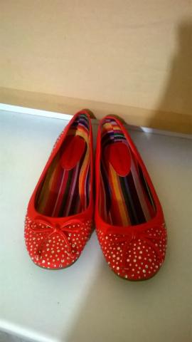 Raudoni, jaunatviški, gražūs bateliai su blizgučiais.