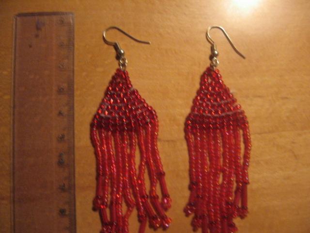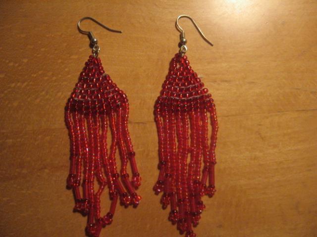 Raudonų karoliukų auskarai, labai mieli, bet ilgai nebenešioju.