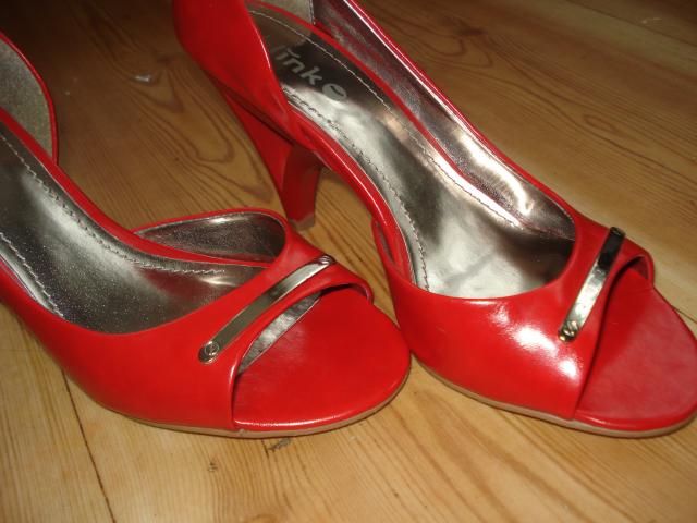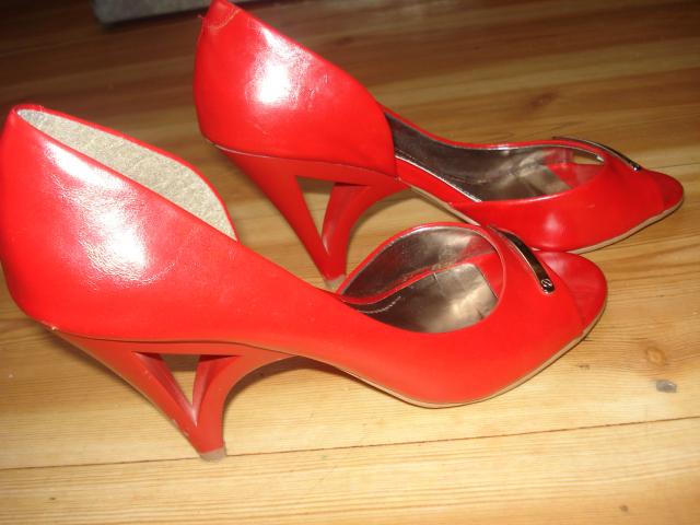 Parduodu raudonus, stilingus batelius. Vos vieną sykį avėti per šventę, daugiau nenešioti nė karto. Abu bateliu kulniukai yra pabrėžti,( nuotraukoje matosi baltos dryžės), bet apsiavus nelb pastebima. todėl parduodu už tikrai žemą kainą. Manau, kad kūribingos panelės sugebės paslepti įbrėžimus blizgučiais ar kitokiu dekoru.