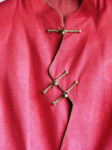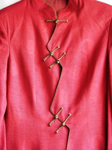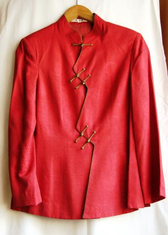 Geros kokybės autentiškas šilko švarkas iš Kinijos. Tiktų didesniam M ar mažesniam L dydžiams. Dailiai apgula figūrą. Išmatavimai: ties krūtine 47 cm., apačioje 57cm., ilgis priekyje 64cm., rankovių ilgis nuo peties 58cm. Gražios žalvario sagutės, šonuose apačioje nedideli skeltukai.