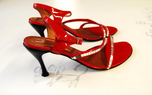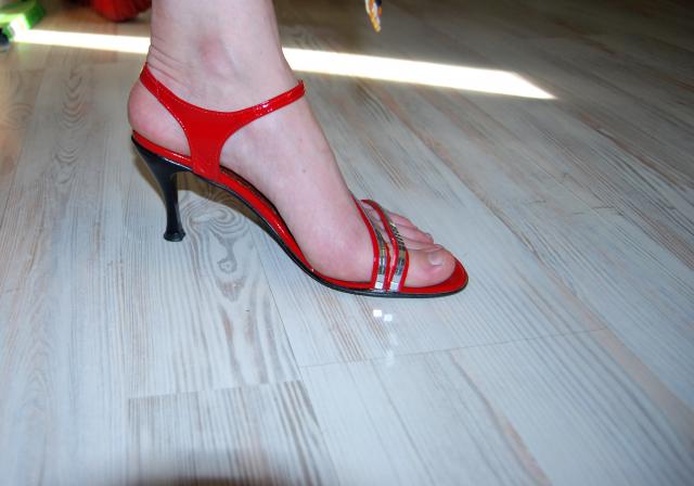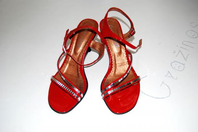 Labai elegantiškos, stilingos basutės. Ryškiai raudonos spalvos (tikra spalva šiek tiek tamsesnė ir sodresnė nei nuotraukoje). Dėvėtos vos pora kartų.