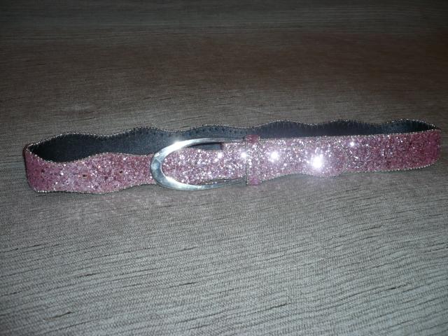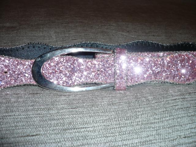 Rausvas spindintis diržas vakarui. Gražiai jis spindi prie dirbtinės šviesos. Plotis 4 cm, visas ilgis be sagties 103 cm. Kaina 7 Lt