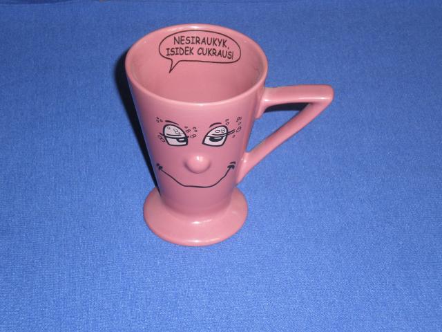Rausvos spalvos virtuvinis puodelis vaikams kavai ar arbatai