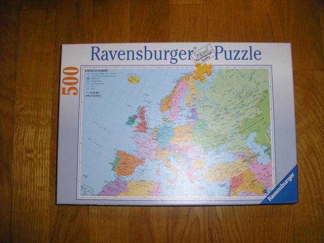 Ravensburger dėlionė 500d. politinis europos žemėlapis. "Political map of Europa". Dydis 49x36cm. Pagaminta Vokietijoje GMBH. Rekomenduojama nuo 6metu.Nauja, aptraukta celofanu - neispakuota.