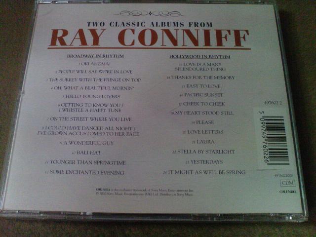 ray conniff - broadway in rhythm/hollywood in rhythm cd, columbia records. tracklistas nuotraukoje.