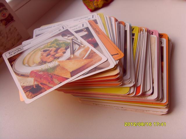Daug daug kortelių su receptais