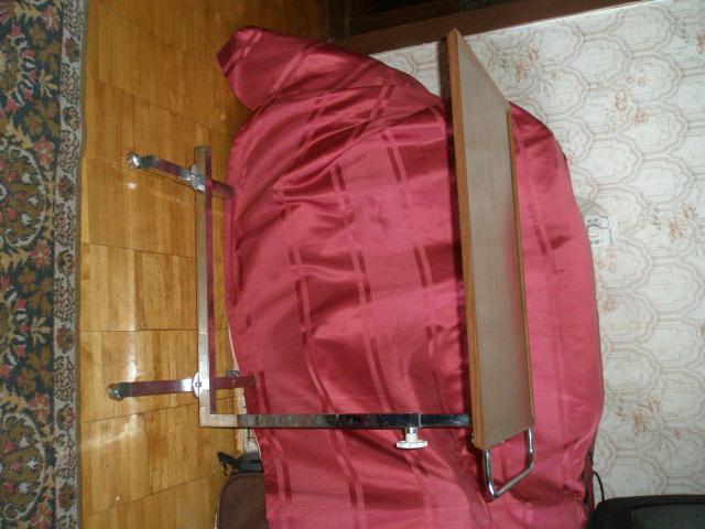Reguliuojamo aukščio stalas. su ratukais, galima keisti stalo viršaus kampą. Tinka statyti prie lovos, taip pat, visose buto vietose. Kaina 80 LT, bet galime ir derėtis. 8 688 54 018