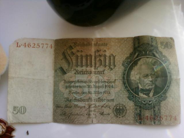 1. 50 REICHSMARK 2 Pasaulinio metu. 2. 1988 m. 20tine bukle ideali. 3. Rusiski rublei 1x10rub. 4x5rub. 2x3 rub. 2x1rub. ir vienas lenkiskas 50 pecdzdeciat nezinau kuriu metu. Ir lietuviskas TALONAS 1lt. 1991 m .