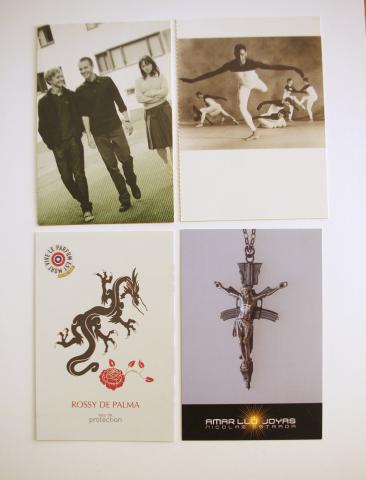 Kai kurie atvirukai su tekstu kitapus, kiti kaip atvirlaiškiai. Būklė įvairi -klauskite. Trečioj foto kampinis - filmo Repriza. Pakutinėj foto peizažas - Arvydas Šliogeris "Via Apia", iš parodos "Filosofo žvilgsnis". Nebėra: šimpanzių.