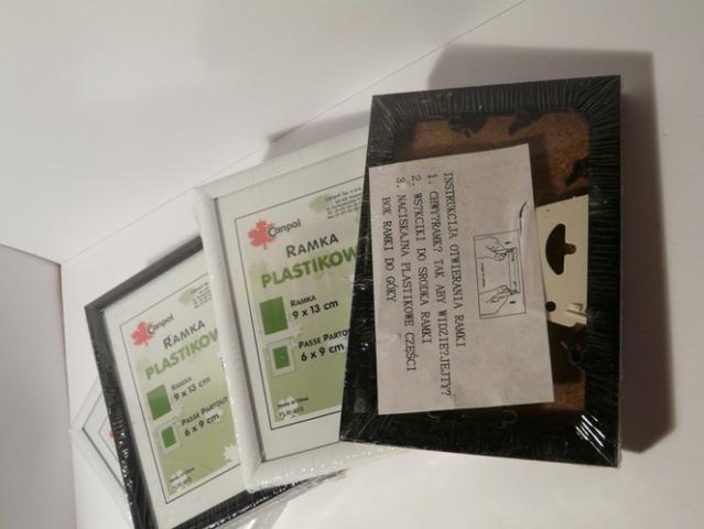 keturi nauji rėmeliai, du balti, du juodi, išmatavimai nuotraukose, vieno pakuotę netyčia įdrėskiau, kiti kaip parduotuvėj. patvarūs.