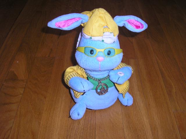 Repuojantis, judantis zuikis. Paspaudus rankyte dainuoja, repuoja, judina galva pirmyn atgal. Kiskis - reperis.