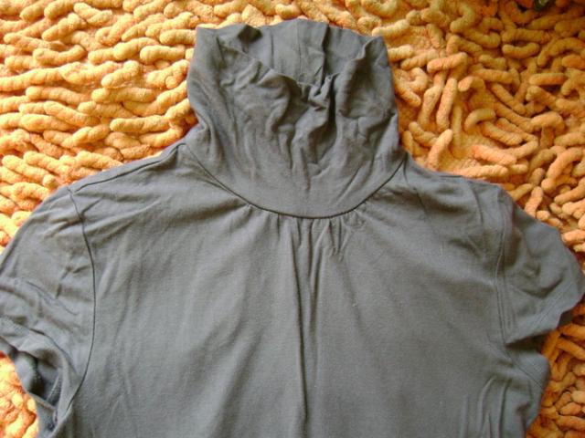 Ilga ruda bliuskutė trumpomis rankovėmis ir stačiu kaklu. Rašo, kad L dydis, bet tikrai puikiai tinka tiek S, tiek M, nes tamposi.
