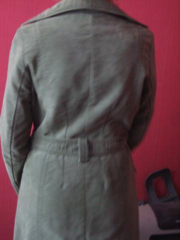 Šiltas rudeninis paltas. Chaki-žalsvos spalvos. Medžiaga:100%medvilnė.