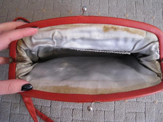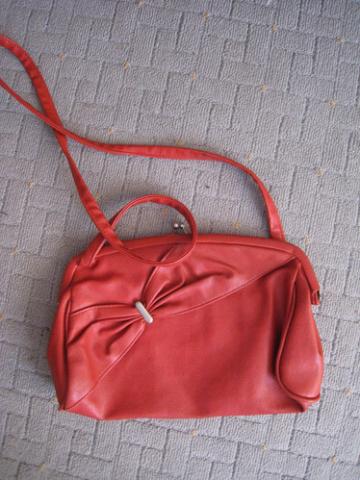 Seip naujas raudonas rankinukas, mano mamos, mazai ji nesiojo, bet nuo stovejimo truputely viduje susigadino, daugiau defektu nera