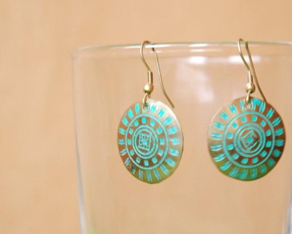 Labai lengvučiai geltono metalo auskarai su ornamentais. Pirkau Camden Towne, Londone.