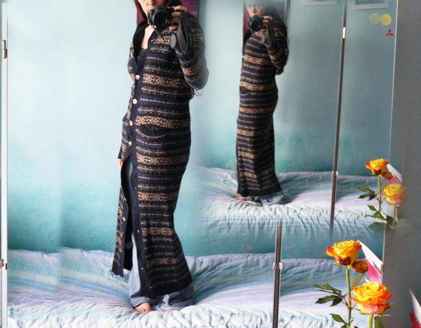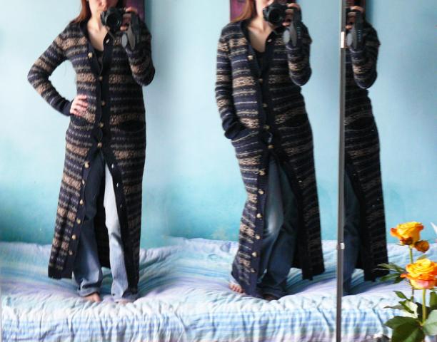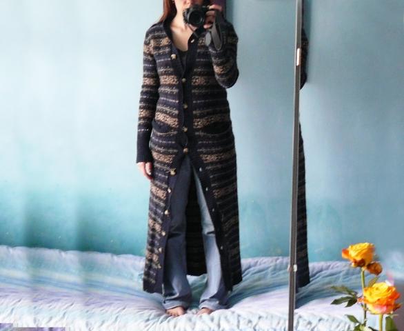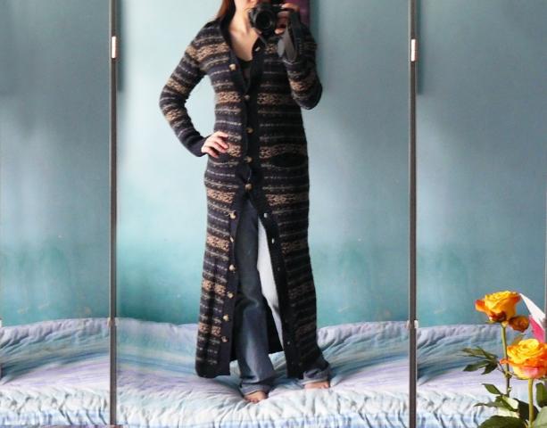 Žodžiu, nešiotas, bet vis dar labai gražus. Bėda tokia, kad buvo išskalbtas su skalbimo mašina ir susitraukė :) todėl dabar dydis jo sumažėjęs ir manau, kad geriausiai tiktų XS nešiojančioms, arba gal dar ir S.