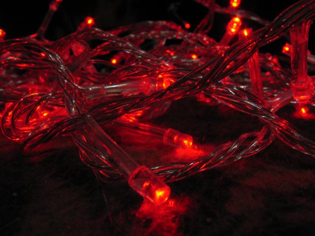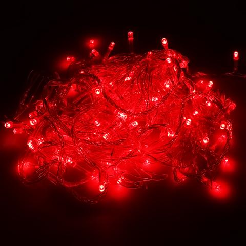 LED elektrine kaledine girlianda eglutes ar patalpu puosimui, viduje, 10 metru ilgis, 100 LEDuku, raudona, 8 keiciami mirksejimo variantai, 220V, EUR kistukas, ryski, ekonomine, nauja, Kaina 8 EUR+ siuntimas pastu nemokamas