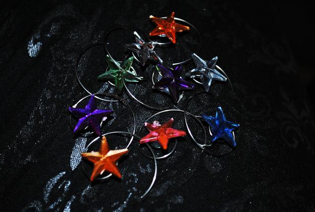 Labai įdomūs segtukai, spiralės formos, su žvilgančiom žvaigždutėm.