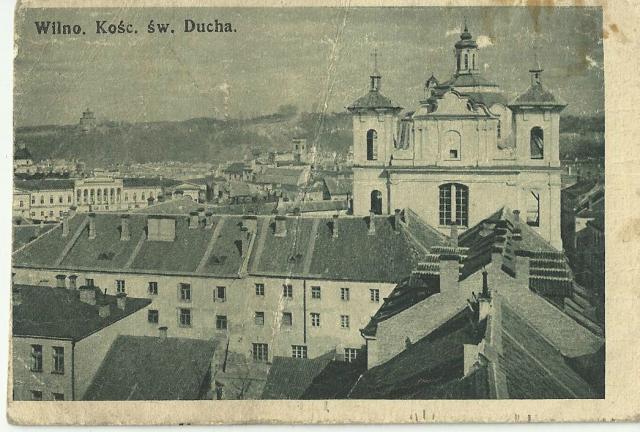 Senas atvirukas su vaizdu i Vilniaus Sventosios Dvasios baznycia.