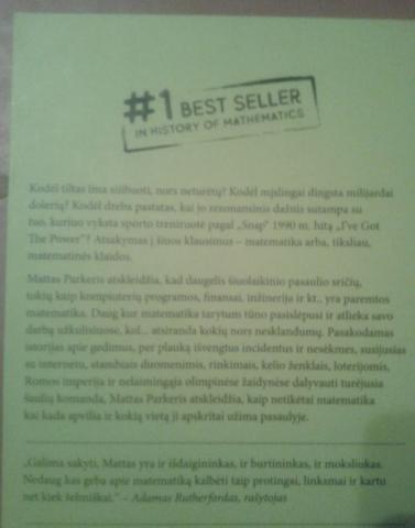 Kodėl tiltas ima siūbuoti, nors neturėtų? Kodėl mįslingai dingsta milijardai dolerių? Kodėl dreba pastatas, kai jo rezonansinis dažnis sutampa su tuo, kuriuo vyksta sporto treniruotė pagal „Snap" 1990 m. hitą „I've Got The Power"? Atsakymas į šiuos klausimus – matematika arba, tiksliau, matematinės klaidos. Mattas Parkeris atskleidžia, kad daugelis šiuolaikinio pasaulio sričių, tokių kaip kompiuterių programos, finansai, inžinerija ir kt.