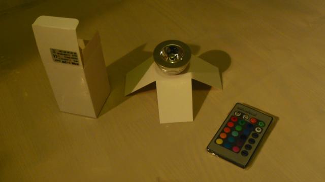 Rgb Led 3w lemputė su nuotolinio valdymo pulteliu. Lemputė sukasi į standartinį lizdą e27.Valdoma nuotoliniu pulteliu. 16 spalvų ir 4 automatiniai režimai. Pultelis jau yra su baterija. Reguliuojamas ryškumas. Puikiai tinka sukurti patalpose reikiamą atmosferą. Naudoja ypač mažai elektros energijos. Galite pažiūrėt video kurį pats nufilmavau: http://www.youtube.com/watch?feature=player_embedded&v=SUkzL1SeXHA