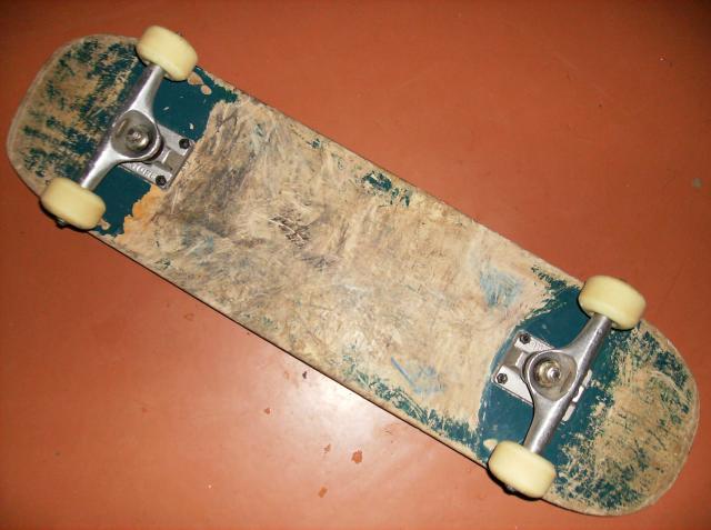 Lenta: Alien Workshop (plotis 7.75", ilgis 30.5"), ašys Venture Awake, ratukai Kryptonics (51mm), varžtukai Independent (visiškai nauji), guoliai: vieni Skechers ABEC-5, kiti kažkokie rusiški. Šiaip dar pridedu maišą įvairių guolių. Viskas tvarkinga, tik lenta padrožta, bet dar laikys. ;)