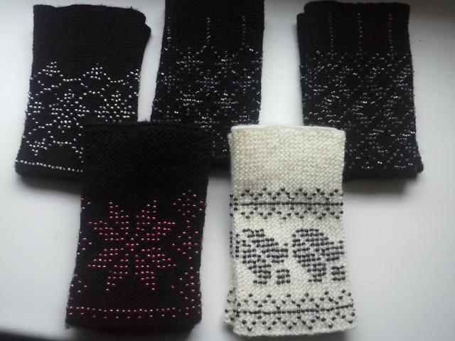 Rankų darbo riešinės. Ilgis 12,0 - 12,5 cm, plotis 8 cm. Siūlai - 50 proc. akrilanas, 50 proc. poliamidas. Galima derėtis. Kaune galime susitikti, o į kitus miestus siunčiu registruotu paštu.