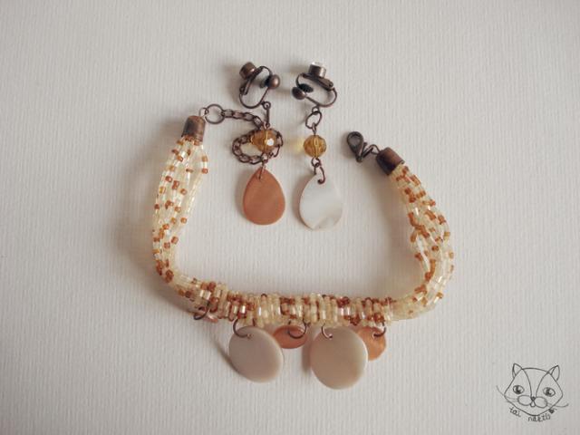 Oranžinių kriauklyčių apyrankė ir klipsai. Nemainau atskirai, tik kartu.
