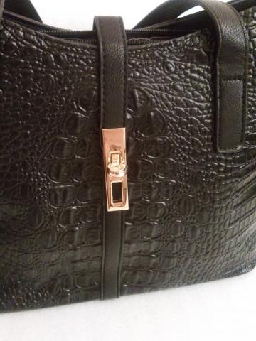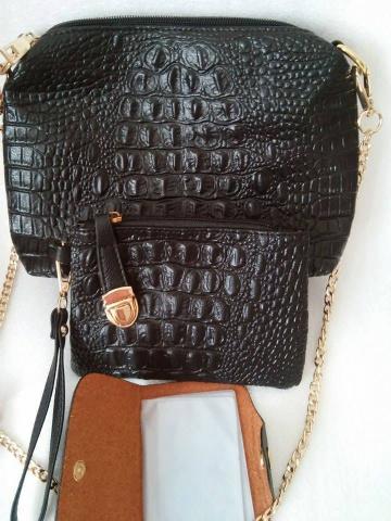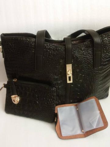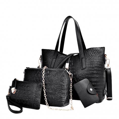 Juodas rankinių rinkinys iš 4 dalių. Taip pat oranžinis ir raudonas.