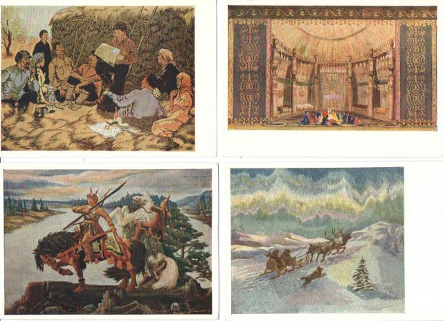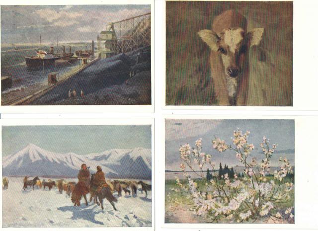 Rinkinyje 23 atvirukai su Jakutijos dailininkų paveikslų reprodukcijomis, skultūromis ir pan. Retokas. Tiražas 25.000
