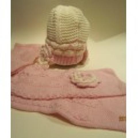 Rinkinys iš kepurės ir šaliko. (1, 8 m, 0,2 m). Puošta iš abiejų pusių gėlytėmis.