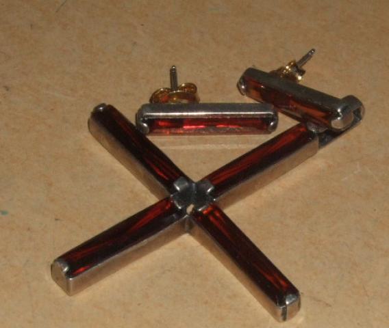 Sidabrinis pakabukas su auskarais , granato akmenimis