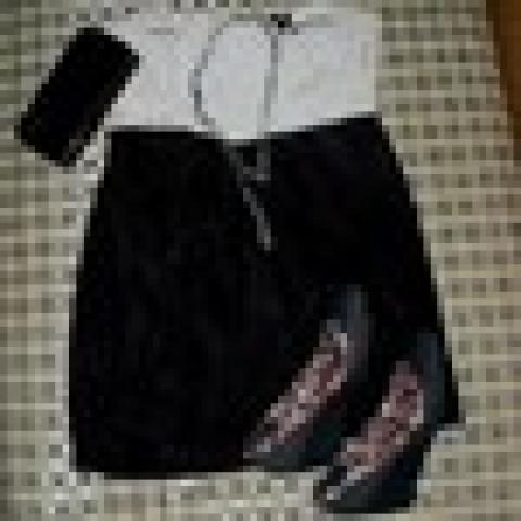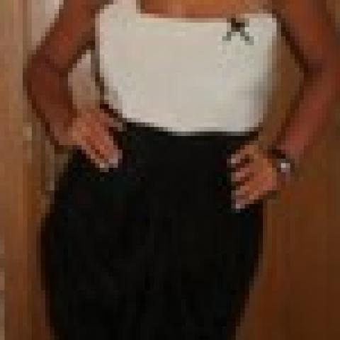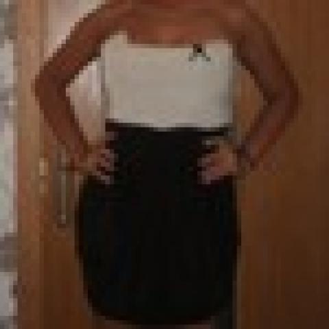 uostabaus grozio,ileminuota, baltai-juoda suknele, be rankoviu:) Atrodo elegantiskai,patraukliai. Nekrenta nuo krutine,ja prilaiko ir pakelia,sone yra mazas kaspinelis,tinka vakareliams,klubams,ar siaip kokiom progom, virsutineje dalyje yra kaip iskirpte,bet ji uzdengta,Be defektu, nuostabios kokybes. Daug moketa,gaila per didele . MAINAMS KAINA DIDESNE