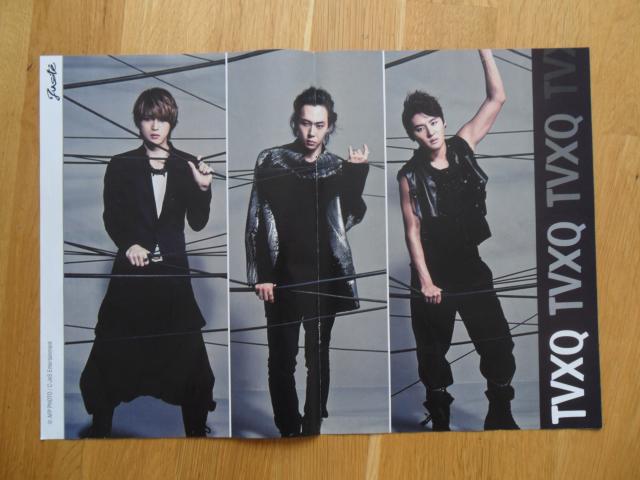 Abipusis plakatas. Is vienos puses Robert Pattinson, o is kitos puses TVXQ grupe.