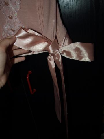 Etiketė nukirpta,pirkau berots reserved, bet tiksliai negaliu pasakyt. Dydis S. Šone turi dailią ilgą juostą,kurią galima apsivyniot aplink liemenį ir užsirišt nedidelį kaspiną arba nevynioti ir užrišti diiidelį bantą :)