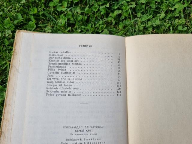 Labai gražūs tekstai - švelnūs, trapūs. 15 novelių. 148 psl. Knyga 1968 metų, išlaikyta gerai. Keliose novelėse yra pabrauktų žodžių, skaityti tai netrukdo. Formatas - mažas, labai smagu skaityti kelionėje :)