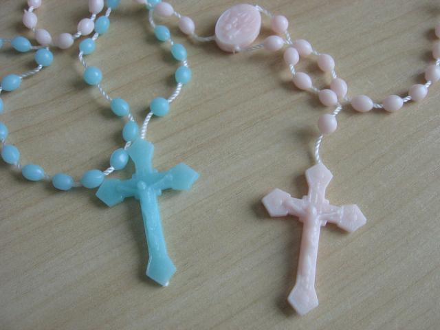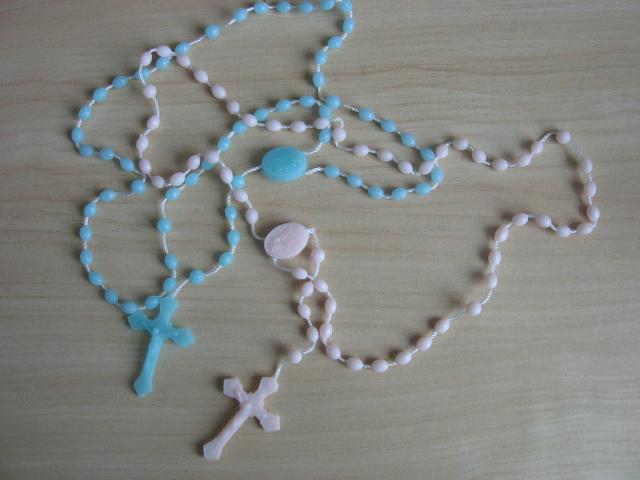 nauji plastikiniai rožančiai, turiu rožinį (švelniai rausvą) bei melsvą
