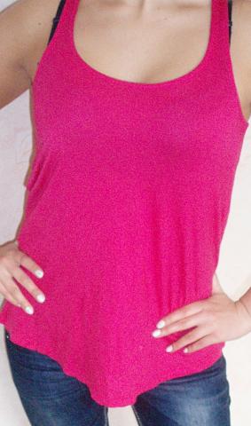Ryški, rožinė bliuskutė . S dydis. Spalva ryški, nenublukusi, gale yra užtrauktukas, ilga ir patogi :) Yra nedidelis defektas yra nufotografuotas 3 foto :) ( ten šiek tiek užsiųta,nes kai kirpau etiketę nuo bliuskutės mažytį taškelį įkirpau) Defektuko beveik nesimato ir jis tokioje vietoje ,kad net nekrenta į akis.